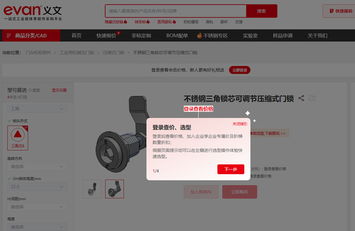 义文工业五金以用户体验为核心,通过智能化指引功能,降低学习成本,赋能工业制造企业供应链数字化升级。进入商品页即可体验,开启高效选型之旅!任何问题与建议反馈,可联系:4008-717-355。