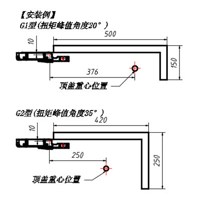 | 扭矩峰值角度35°的型号(G2型)适用于有一定高度、进深小的顶盖 |