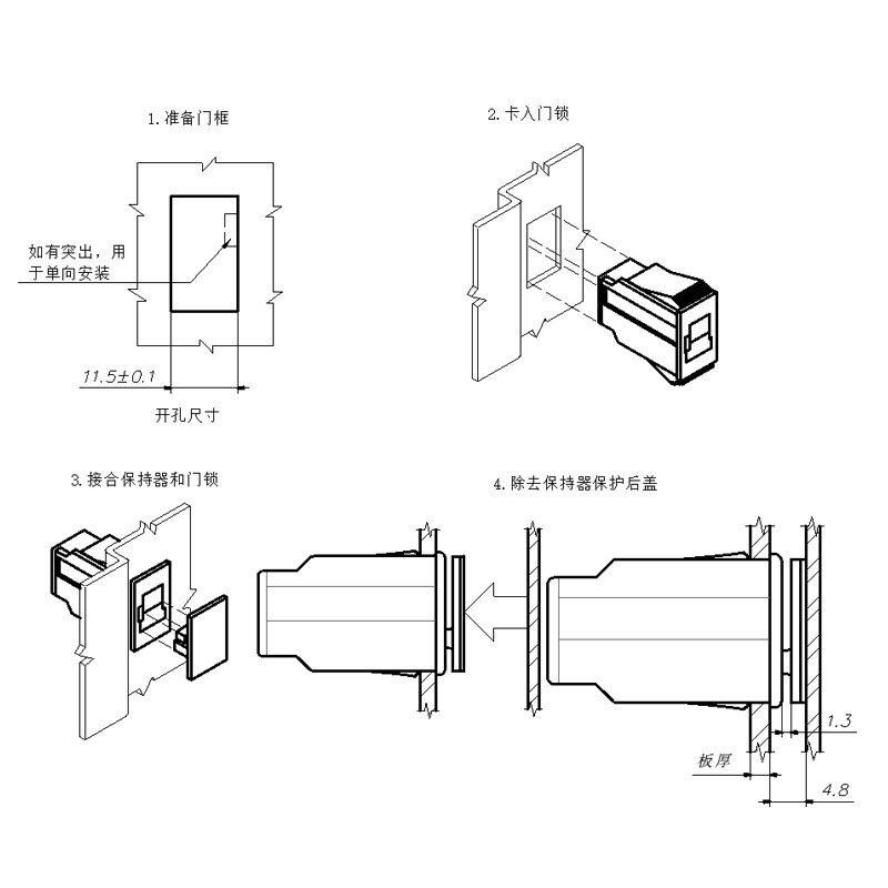 塑料卡入式按压式门锁